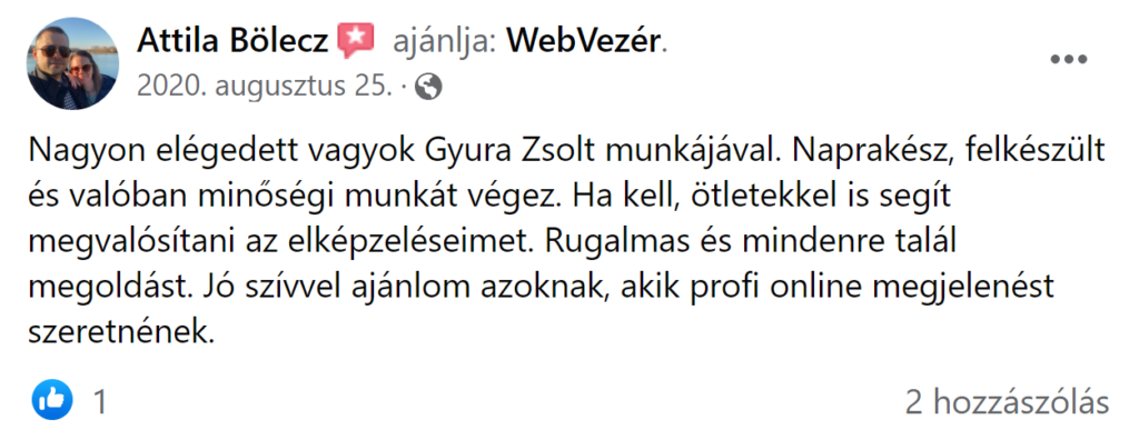 és az ő ügyfelei véleményét olvashatjátok a munkájáról